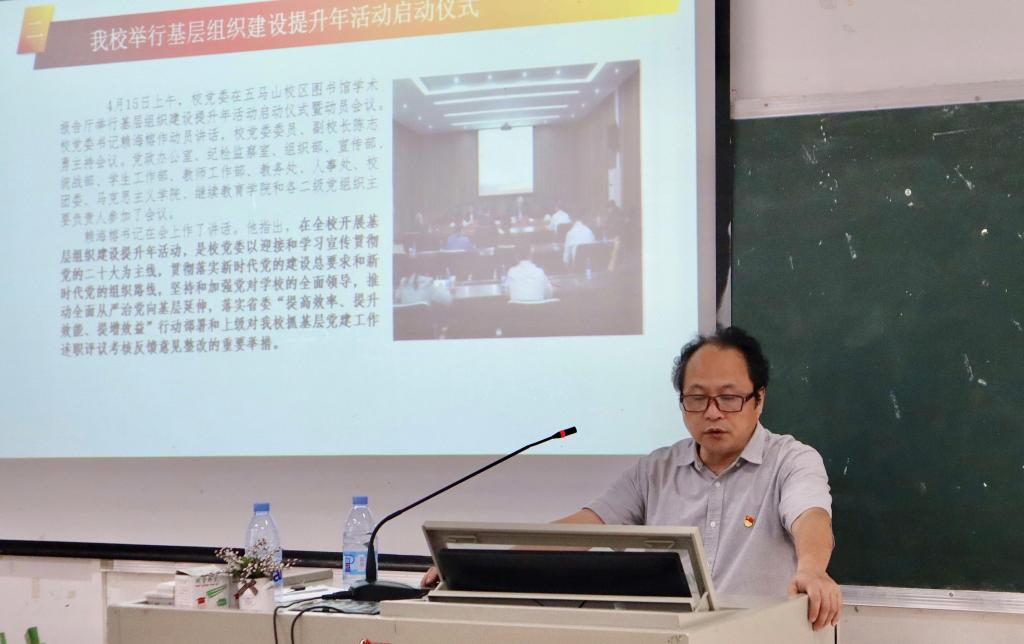 会议传达了学校《关于开展基层组织建设提升年活动的实施意见》的通知,以及校党委书记赖海榕在学校基层组织建设提升年活动启动仪式暨动员会议上的讲话精神。