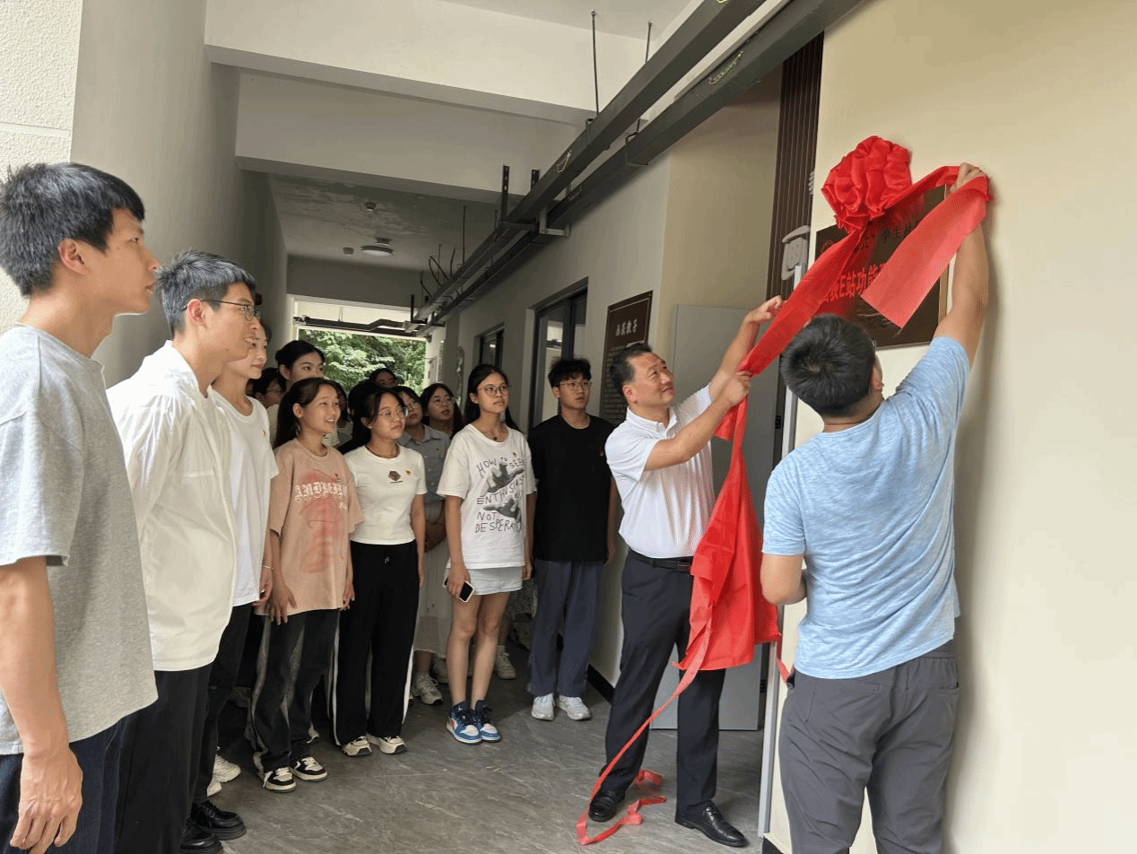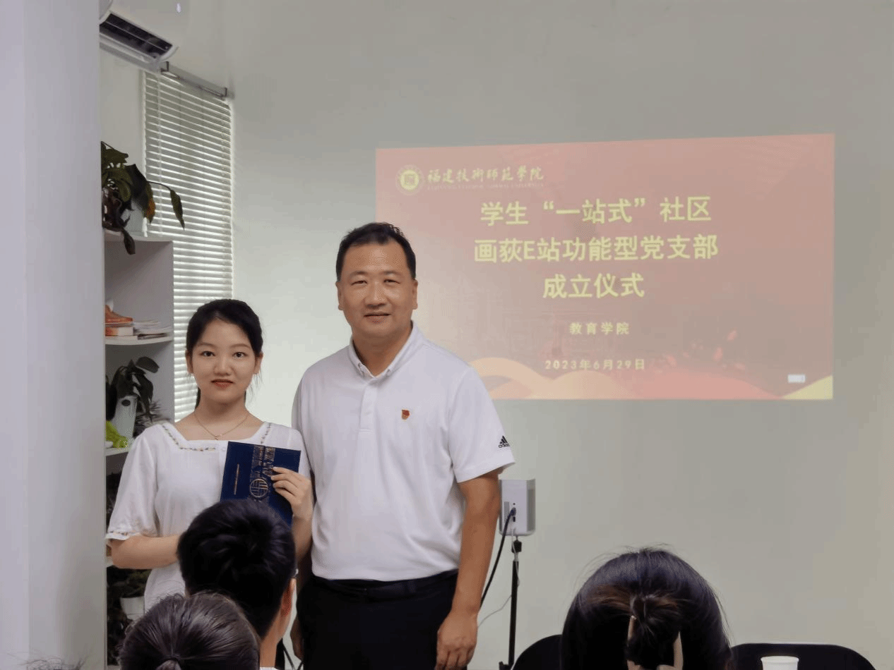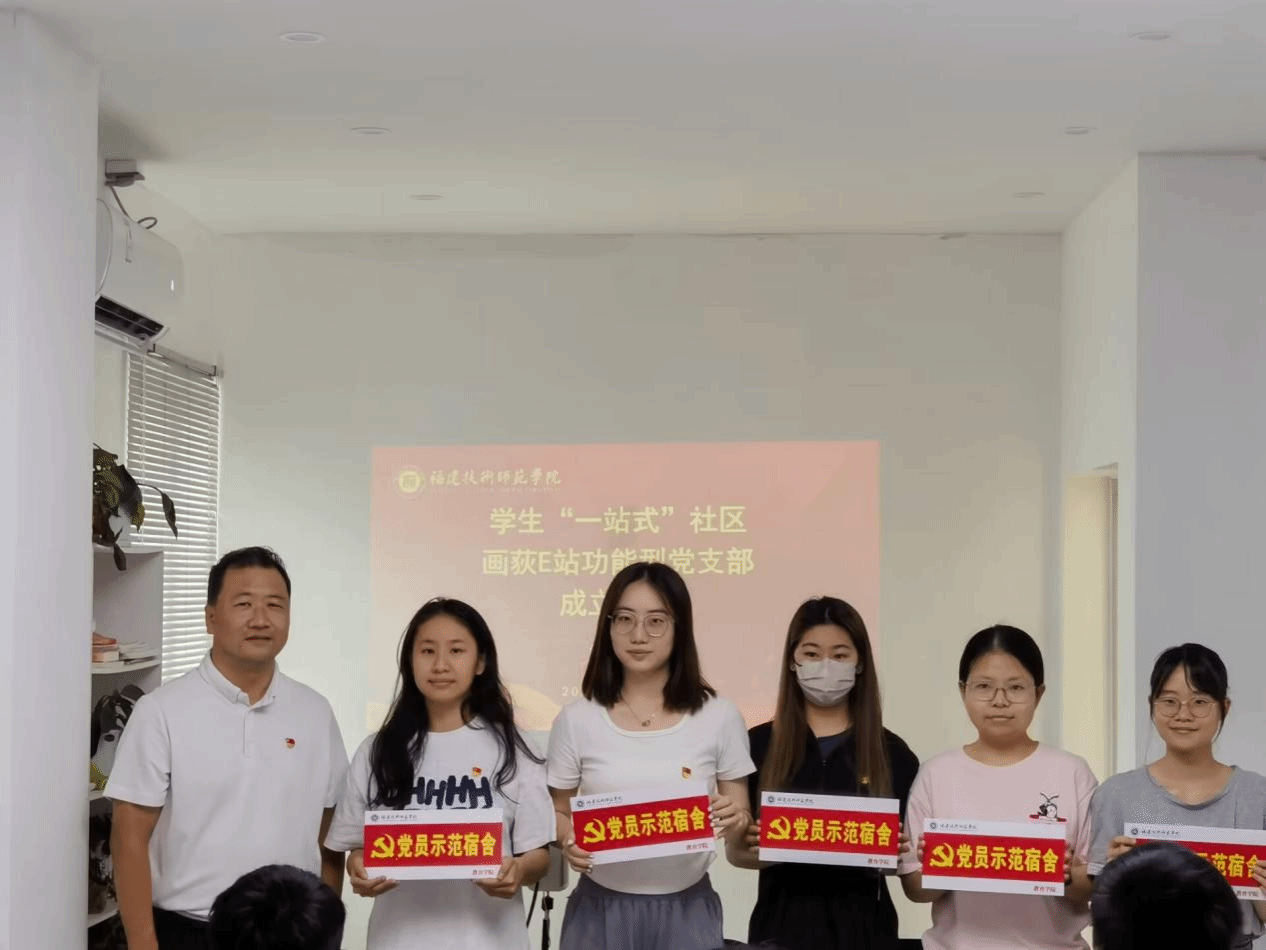 在热烈的掌声中,院党委副书记郑向峰和院团委副书记陈浩源共同为“画荻E站”功能型党支部成立揭牌。接着,郑向峰副书记为党支部书记戴丽玲颁发聘书,并依次为学生党员宿舍授牌。