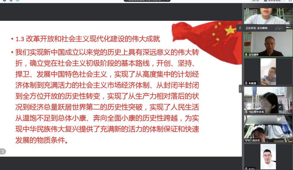 9月15日下午,我院组织师生党员进行线上集中学习习近平总书记在建党一百周年上的重要讲话精神。本次会议是我院“党史我来讲”系列活动,主要包括两大环节,一是院党委书记林俞男进行“七一”党课宣讲,二是教师党支部书记李龙辉老师讲党课。