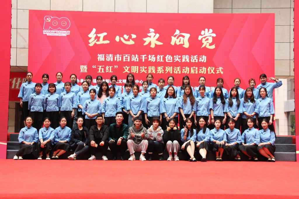 为庆祝中国共产党成立100 周年,讴歌中国共产党百年奋斗历程,我院于4月9日上午9:00 参与由福清市新时代文明实践中心主办的“红心永向党”福清市百站千场红色实践活动暨“五红”文明实践系列活动启动仪式。