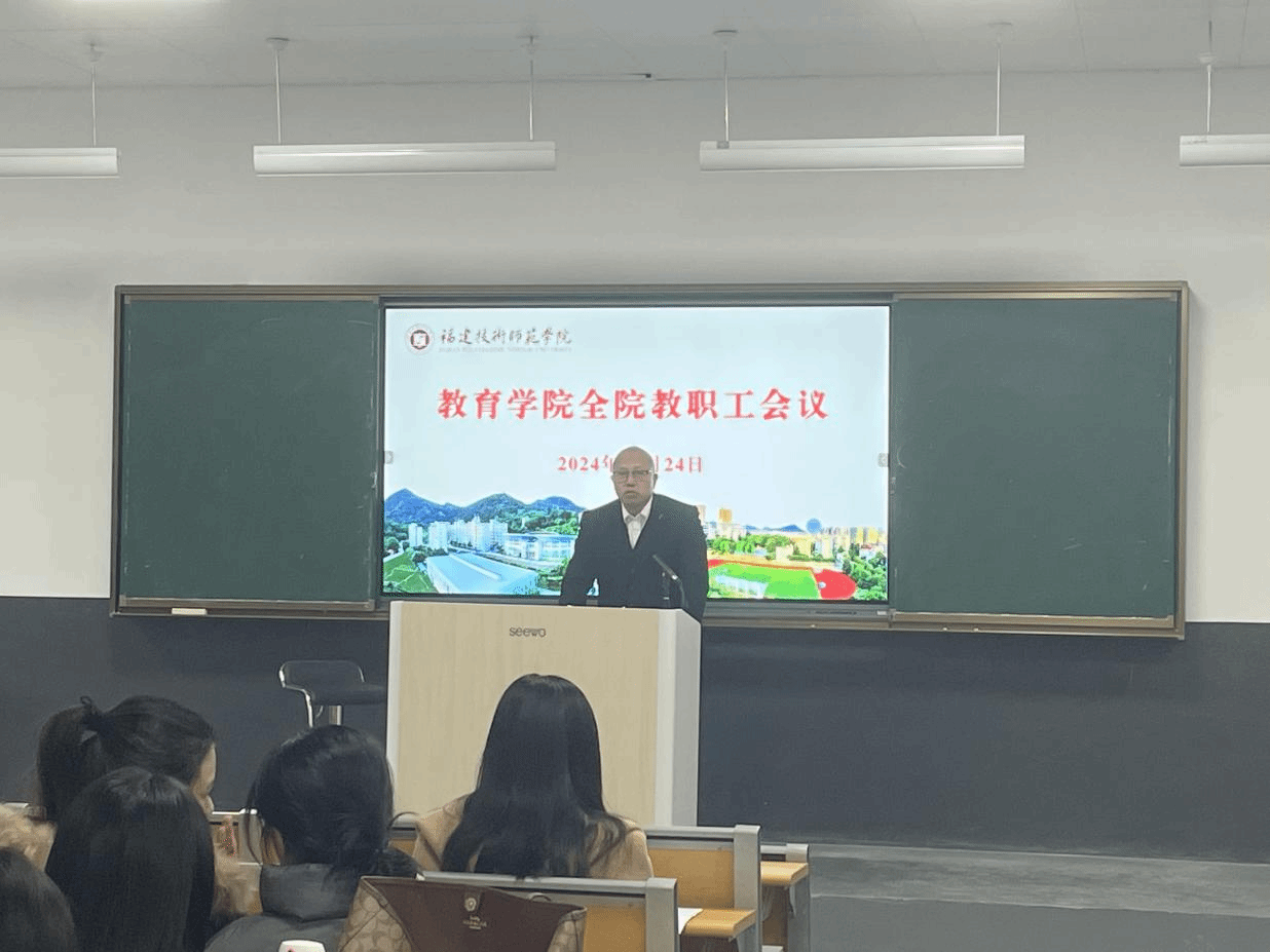 副院长(主持工作)胡剑锋对学期末做工作总结与强调。他回顾了本学期我院在教学、科研等方面的工作成果,并对期末监考及阅卷、硕士点培育建设、2025年科研项目申报等工作提出明确的目标和要求,希望全体教职工继续努力,共同推动学院各项事业再上新台阶。教学管理老师翁秀燕介绍了期末监考、阅卷、成绩录入等工作的注意事项。
