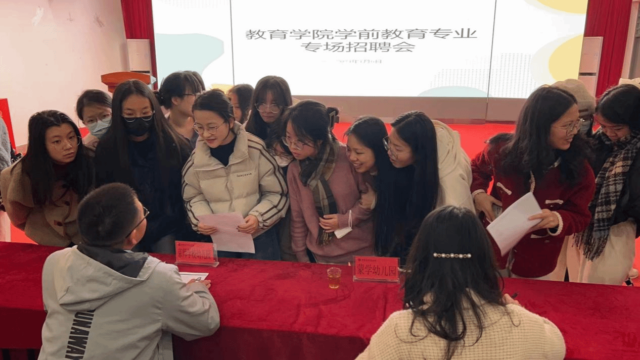 会后,相关单位在科学楼金泰学术报告厅举行了学前教育专业专场招聘宣讲会。现场,毕业生们热情高涨,主动与用人单位就岗位需求、工作内容、薪资待遇、发展空间等方面进行充分交流,积极投递简历。