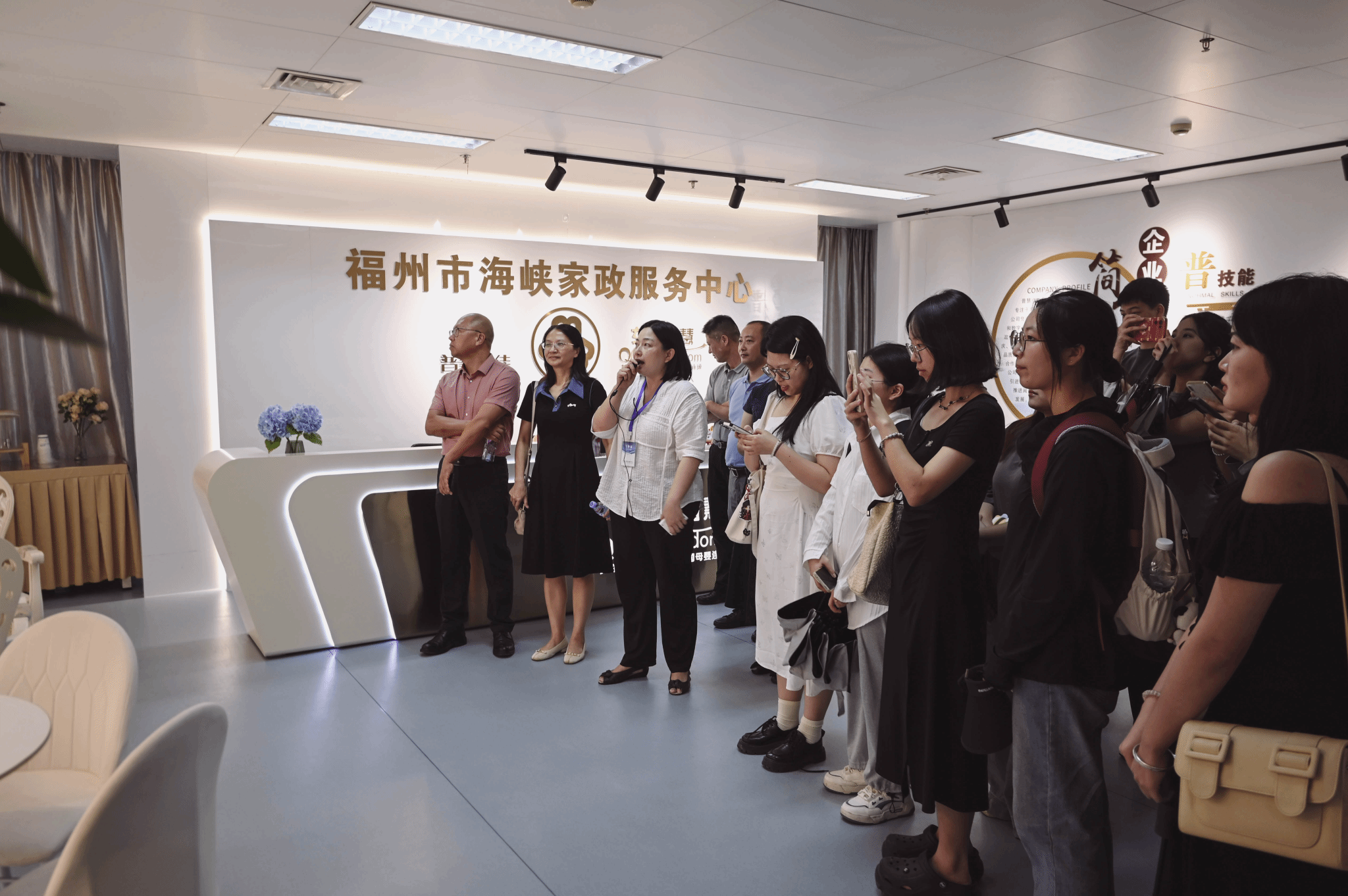 为深入贯彻落实高校毕业生就业工作有关决策部署,更好提升学院人才培养质量和就业工作质量,推动校企协同育人,拓宽学生实习就业渠道,9月13日下午,学院党委副书记(主持工作)倪秉东、副院长(主持工作)陈妮娅、副院长胡剑锋带领2021级家政学专业学生前往福州市海峡家政服务中心开展访企拓岗促就业活动和《家政企业运营与管理》课程企业实践教学活动。学院师生在普慧众佳和女王智慧家政公司的负责人陈志伟、徐爱平、潘春联等人的热情接待下参观了服务中心,了解中心的功能和运营情况,并进行座谈。双方就家政学专业产教融合、实习实训基地建设、课程建设合作、实习就业等内容达成初步意向。