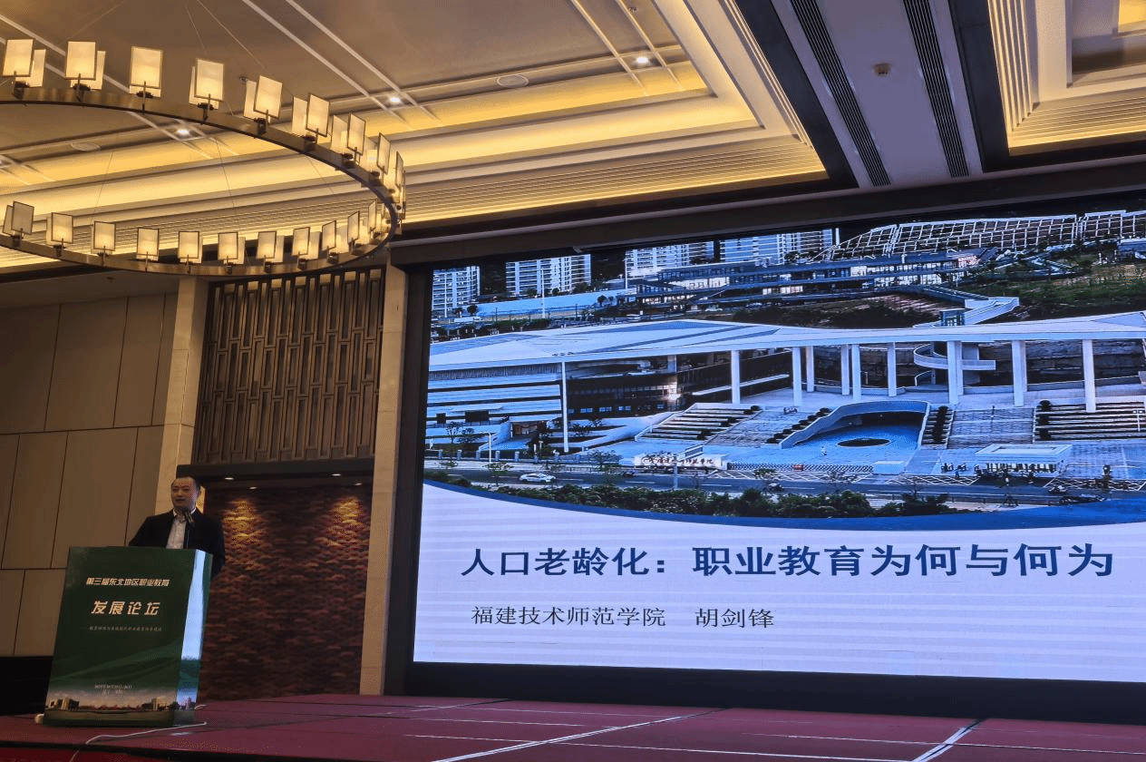 我院胡剑锋教授参加了本次论坛,并做了题为《人口老龄化:职业教育为何与何为》的专题报告。报告从人口老龄化的视角切入,探讨了职业教育在服务人口老龄化中的机遇与实现路径。