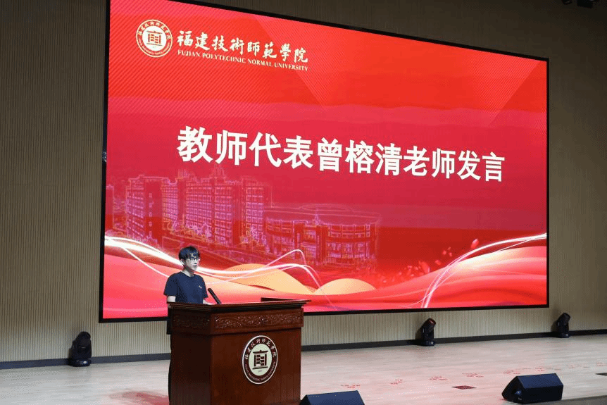 毕业于北京师范大学的曾榕清博士作为教师代表发言,他从教育工作者的视角分享育人初心,寄语新生以谦逊态度深耕专业、以进取精神探索未知。