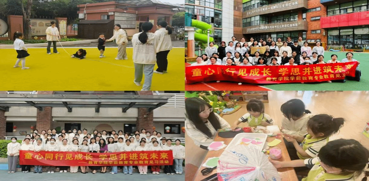 为深化理论与实践融合,提升学生专业实践能力,我院学前教育专业2022、2023、2024级同学们分别前往福清市市直幼儿园、福清市城关幼儿园等六所幼儿园开展教育见习活动。本次见习以"童心同行见成长 学思并进筑未来"为主题,通过跟岗见习,助力同学们完成从理论知识到教育实践的转化。