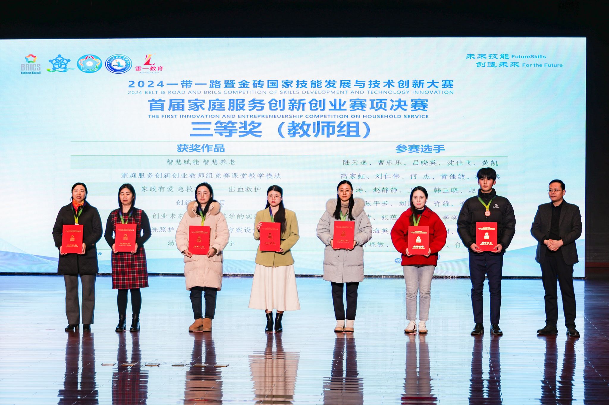 12月21日至23日,2024一带一路暨金砖国家技能发展与技术创新大赛首届家庭服务创新创业赛项决赛在菏泽家政职业学院举行。比赛分为中职组、高校组、教师组、国际组,共有112支参赛队、400余名师生参加比赛。我院家政学专业教师团队李奕、张蕴、黄柳清、邹文韬参加教师组比赛获得三等奖,家政学专业学生团队朱怡珏、游欣怡、郑楚悦、侯梦宇、张璟琦参加高校组比赛获得优秀奖。