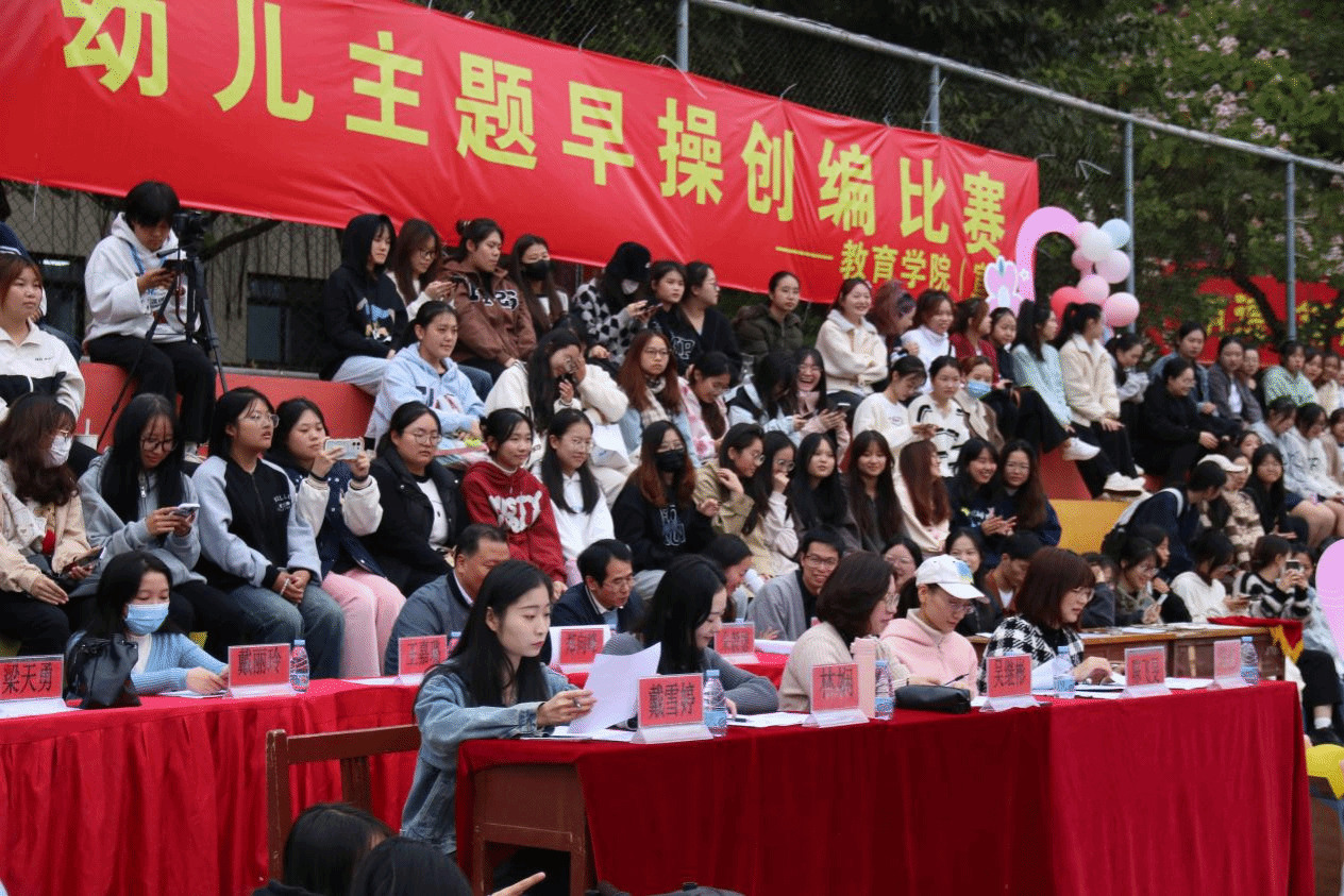 为培养学生创新精神、实践能力,根据《学前教育专业本科人才培养方案》要求,切实推进课赛融合,促进广大同学积极参与教学实践,11月15日下午,我院在五马校区操场举办“跃动早操,悦享健康”主题幼儿早操创编比赛。学院党委副书记郑向峰、专任教师、全体辅导员以及各年级学生代表参加了活动。