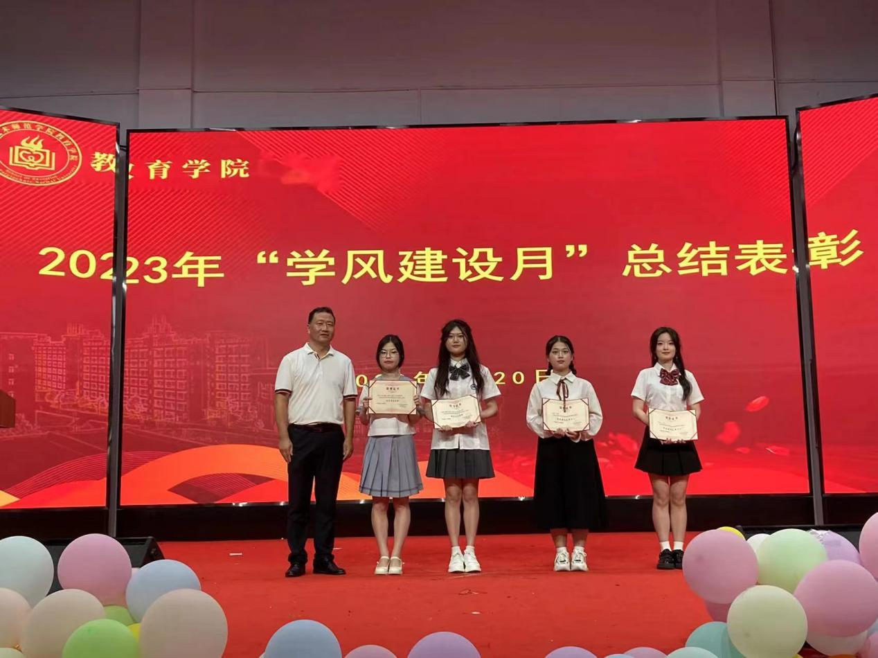 在观看了2023年“学风建设月”活动视频之后,学院副院长胡剑锋在会上宣读了学风建设先进个人和先进集体名单,学院党委副书记郑向峰依次为获奖的先进个人和先进集体代表颁发荣誉证书。全体学生在学院学生会执行主席郑子睿的带领下,进行了诚信应考宣誓。