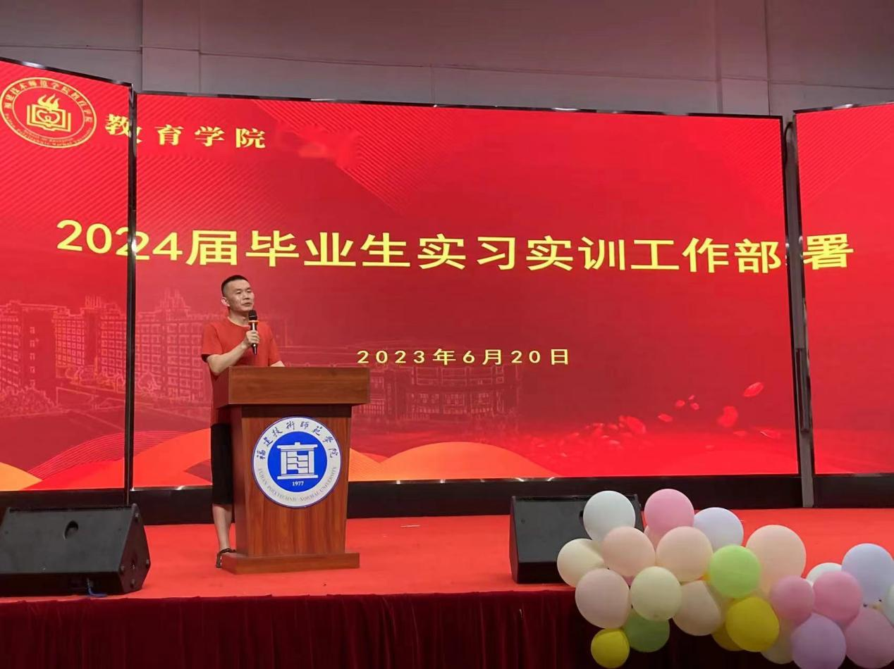 在2024届毕业生实习就业动员环节,应用心理学专业主任蒋怀滨、学前教育专业副主任朱毅德分别就应用心理学和学前教育专业实习就业工作作了动员部署,为同学们明确了下一阶段的学习任务和计划。