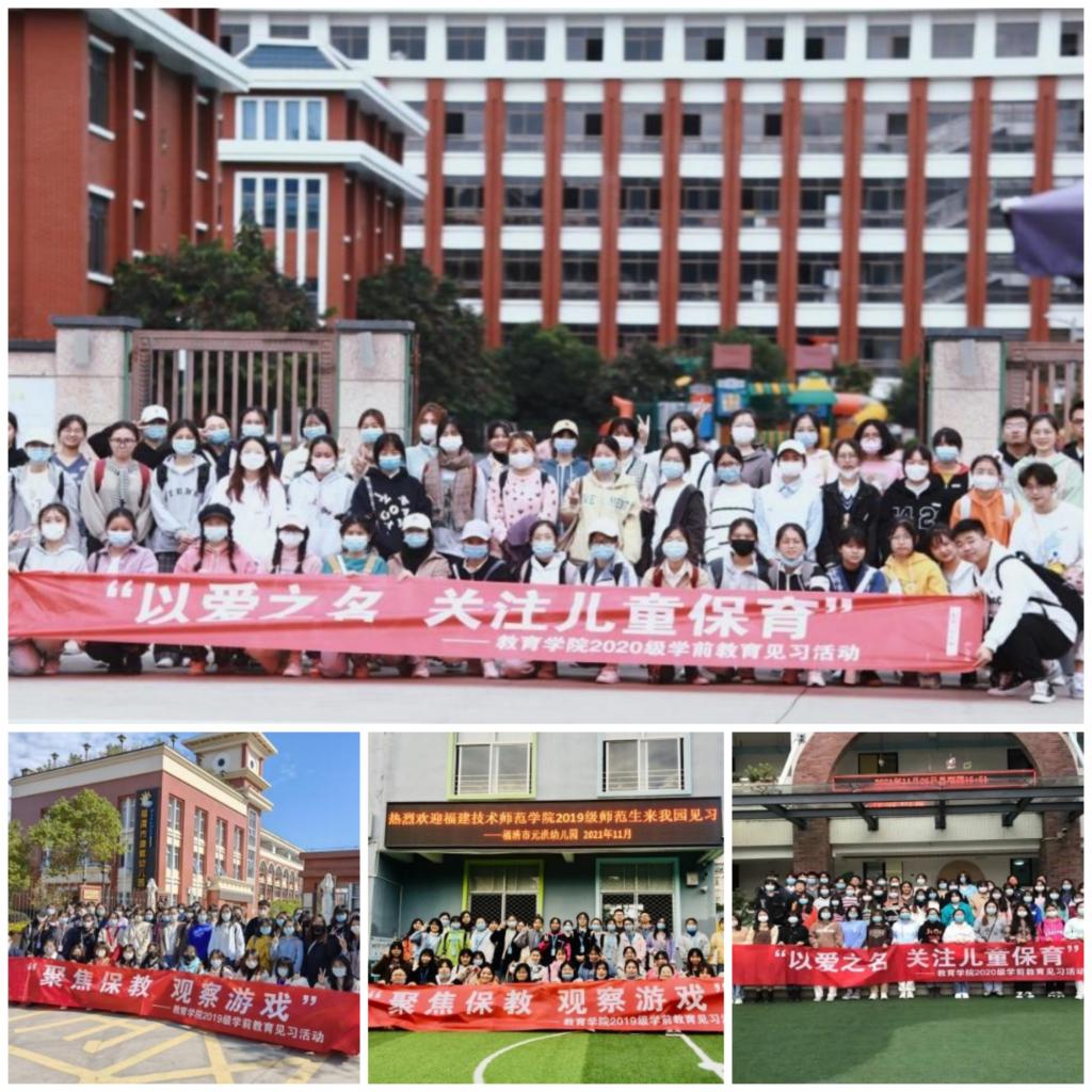 11月25日-12月1日,我院2019级、2020级学前教育专业5个班249名学生在学前教育专业教师带领下分别前往福清实验儿童学园、元洪幼儿园、康辉幼儿园、瑞亭幼儿园、北师大福清附属幼儿园5个园开展了为期一周的教育见习。