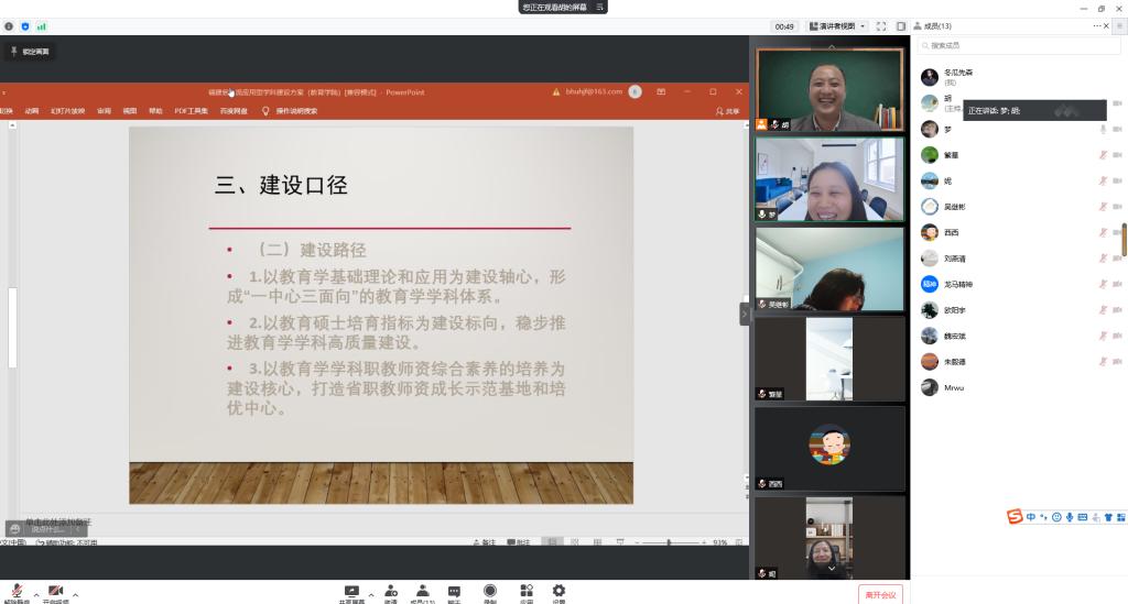 3月29日晚,我院召开一流应用型学科建设方案专家论证会线上会议,福建师范大学心理学院副院长孟迎芳教授应邀参会指导,我院院长陈妮娅、副院长胡剑锋及相关专任教师参加了会议。教务处处长魏宏斌也应邀到会。