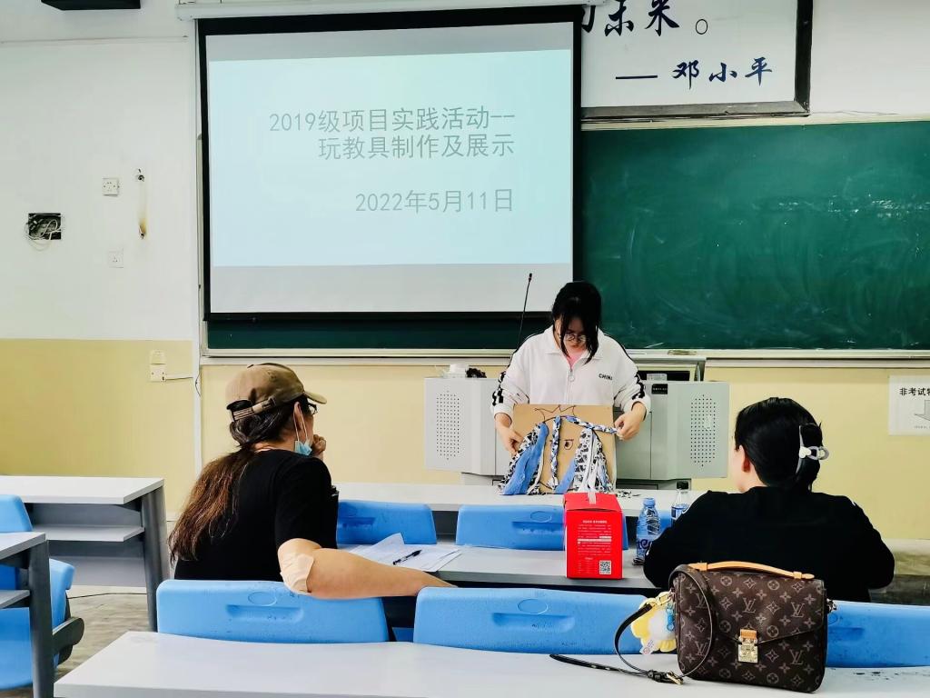 5月11日下午,在石竹校区J1教学楼,我院组织学前教育专业2019级全体137名学生参加玩教具制作与展示考核。考核分为4个小组同时进行,学前教育专任教师进行现场评分。每位学生根据自己制作的教玩具作品,围绕其适用设计意图、材料、玩法、价值等方面进行了3-5分钟的作品介绍,并现场回答问题。