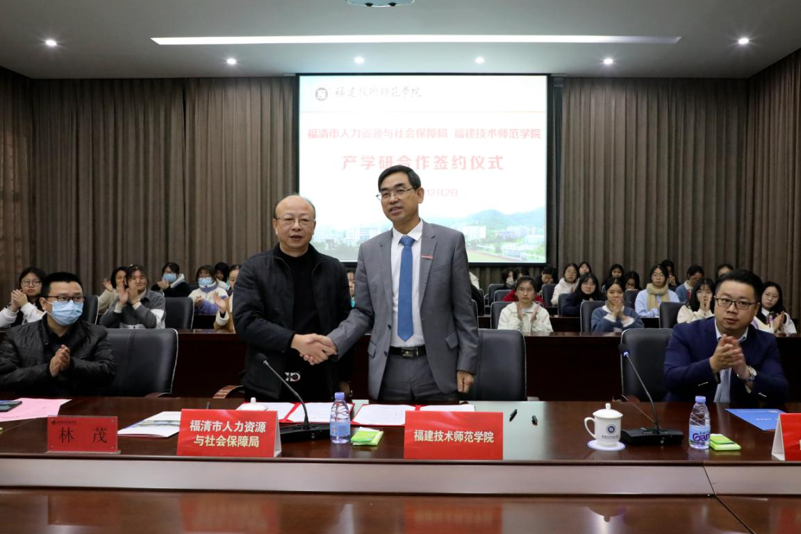 商光美副校长代表学校,分别与人社局、中能电气股份有限公司签订了福清人才服务智慧平台建设合作协议以及校企产学研项目合作协议等,签约总金额100万元。