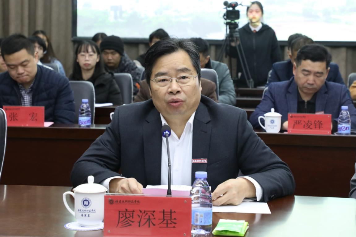 仪式上,廖深基校长在致辞中代表学校向福清市人力资源和社会保障局、中能电气股份有限公司对学校事业发展的支持表示衷心感谢,并简要介绍了学校基本办学情况、办学特色和未来发展思路。廖深基校长代表学校致辞。他向福清市人力资源和社会保障局、中能电气股份有限公司对学校事业发展的支持表示衷心感谢,并简要介绍了学校基本办学情况、办学特色和未来发展思路。他表示,此次校地、校企合作共建协议的签订,是深入落实福清市与学校战略合作框架协议,全面融入新福清建设的生动实践。他希望校地、校企本着“优势互补、互信共赢、共同发展”的原则,坚持目标导向、需求导向、效果导向,共同落实好协议内容和合作项目,谋求高水平合作、实现高质量发展。他要求相关学院充分发挥学科优势,统筹校内人才、学科、平台、科研等优势资源,为福清人才服务智慧平台建设,为福建中能电气技术攻关、产品开发、员工援助等提供全方位的支持,共同构建创新服务体系,助力福清经济社会发展,在全方位推进高质量发展超越中出经验、当标兵。