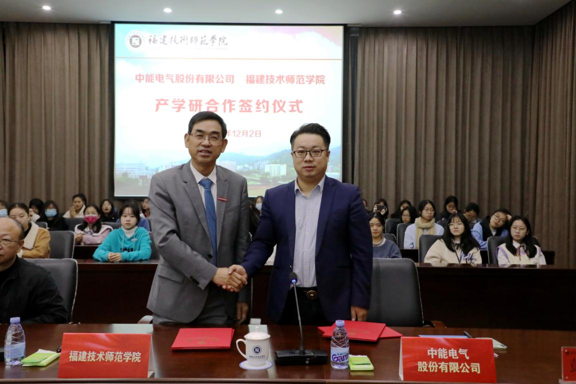 12月2日上午,我院承办的产学研合作签约仪式在图书馆学术报告厅隆重举行。校长廖深基,校党委委员、副校长商光美,福清市人力资源和社会保障局副局长林茂,中能电气股份有限公司总裁助理兼集团销售总经理彭全成,科研处处长姚忠亮,电子与机械工程学院党委书记严凌锋、电子与机械工程学院院长吴瑞坤、大数据与人工智能学院院长李立耀、继续教育学院院长何家标和我院党委书记林俞男、院长陈妮娅,以及师生代表参加签约仪式。