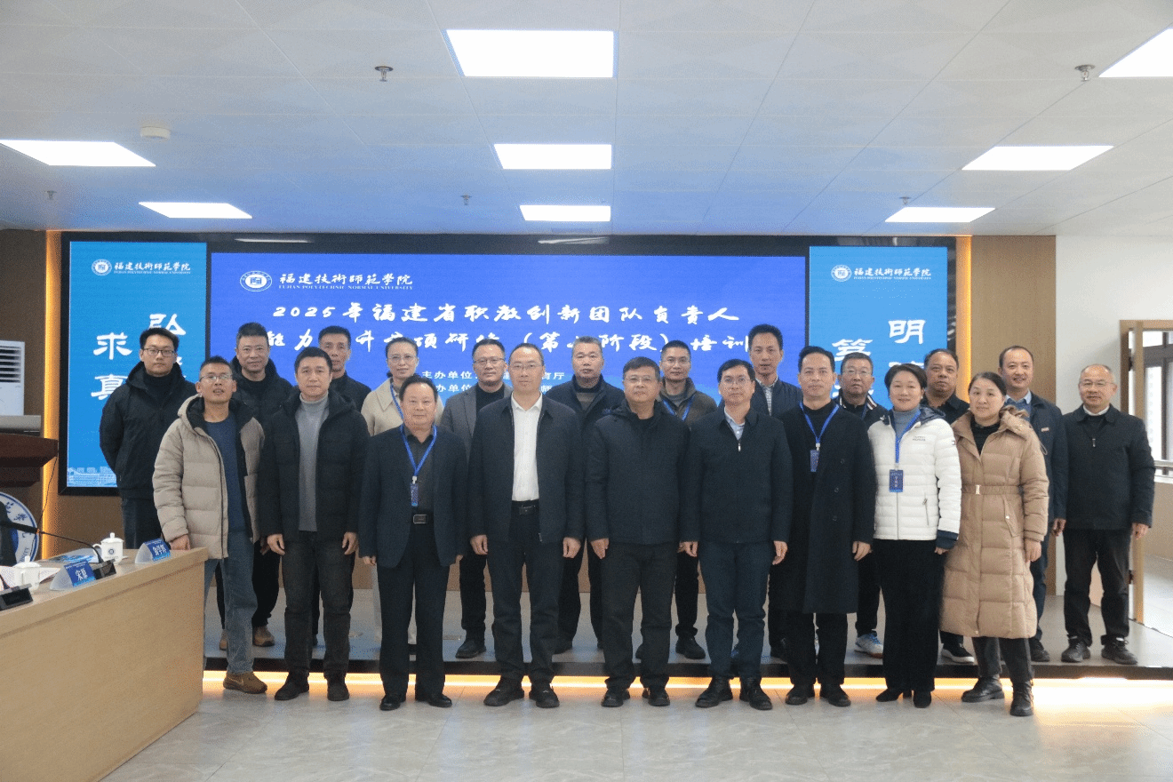 1月23日至24日,2025年福建省职教创新团队负责人能力提升专项研修(第二阶段)培训在我校举办。本次培训由福建省教育厅主办、我校承办,共有来自全省中高职院校的19名职教创新团队负责人参加。副校长姜兴山,继续教育学院院长高潮、我院副院长(主持工作)胡剑锋、文化与法律学院院长宋原、福建省职业教育师资培训中心办公室主任翁学辉、继续教育学院跟岗干部张小集出席会议。