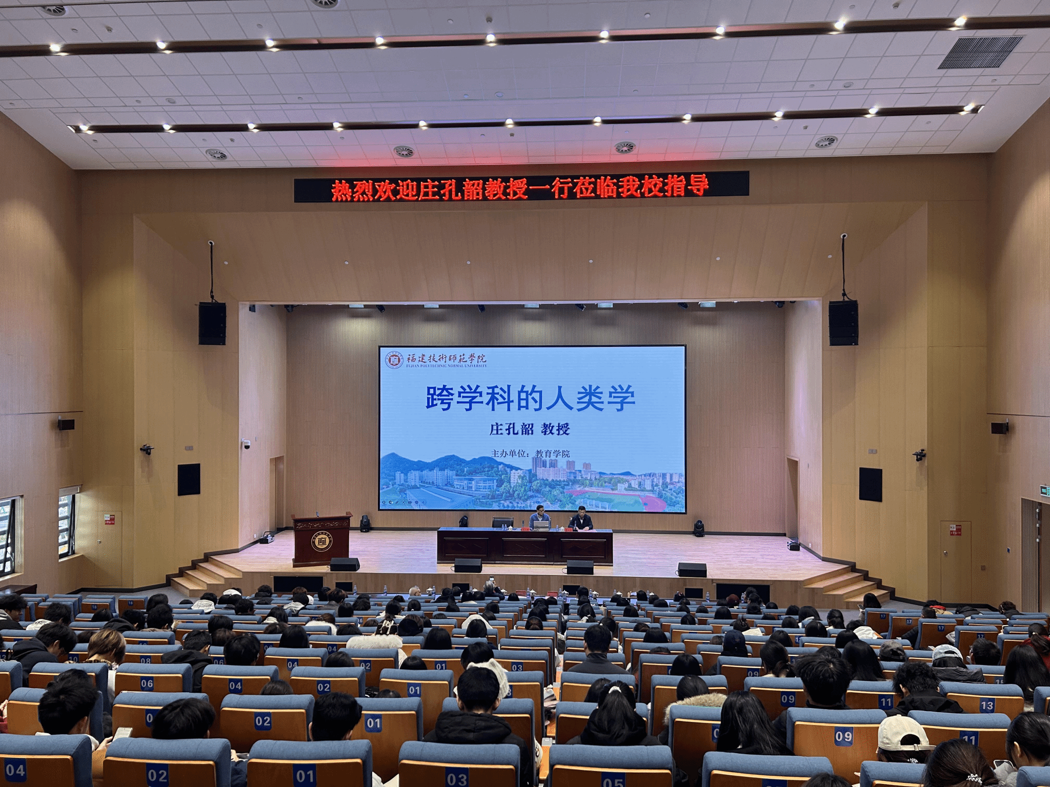 讲座特邀中国人类学界泰斗、复旦大学特聘教授庄孔韶担任主讲,校党委委员、副校长姜兴山主持讲座。福建省社会主义学院原副院长陈宜安、厦门大学人类学系副教授宋雷鸣等嘉宾,以及全校各学院师生代表齐聚一堂。